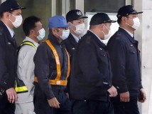 A man who strongly resembled Ghosn was seen leaving in the silver van from the Tokyo Detention Center after he posted 1 billion yen ($8.9 million) bail. He was surrounded by security guards and was wearing a surgical mask, glasses, a hat and a construction worker's outfit.