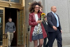 Alinejad said outside the courthouse that she wore a red coat for symbolic reasons, “because the killers wanted to see me covered with blood; they wanted to see me dead on my porch in Brooklyn.”