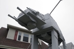 At 19 feet, the replica is nearly as tall as Meyer's home in Parma, a Cleveland suburb. The cockpit of the AT-AT walker is outfitted with lights that glow red at night, and a mannequin fashioned to resemble a "Star Wars" Stormtrooper soldier stands guard in front.