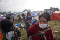 While many across Nepal are opting to sleep outdoors for fear of the constant aftershocks, those in Paslang have no choice because almost no buildings are left standing. At night, survivors huddle together against the cold, rain and mosquitoes, and wait until dawn.