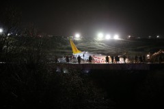 In January 2018, another Boeing 737-800 in the Pegasus’ fleet slid off a runway at northeastern Turkey’s Trabzon Airport and down a dirt embankment. The plane came to rest in the dirt above the Black Sea with its nose pointed toward the water. None of the 168 passengers and crew members were injured.