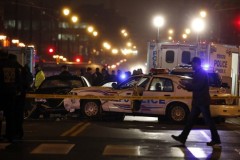 He fired again at them during the chase before police blocked him and collided with his car, Lanier said. Cornered, the suspect opened fire again and police shot back. During the exchange of gunfire, both the suspect and an officer were wounded, she said.