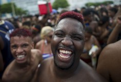 Some parties are small — for example one including a few dozen dog owners exhibiting their pets wearing wigs or funny hats. But most feature amps blasting music to throngs of thousands who dance, kiss and swill booze in a crush of celebration. The biggest one boasts more than two million partygoers.