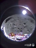 The LRO photos from 56 miles (90 kilometers) up are the only ones showing the lander on the surface, but as little more than a spot in the grainy images. A camera-ejecting experiment by Embry-Riddle Aeronautical University, to capture images of the lander as they both descended, was called off shortly before touchdown because of a last-minute navigation issue.