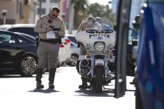 Las Vegas police officer Aden Ocampo-Gomez said the semi-truck's driver was cited for illegal backing. No injuries were reported.