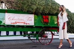 WASHINGTON (AP) — First lady Melania Trump on Monday welcomed this year’s official White House Christmas tree, a white fir from a farm in Michigan that arrived by horse-drawn carriage.