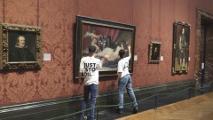 Last year two activists threw two cans of tomato soup over Vincent van Gogh’s “Sunflowers,” also at the National Gallery, to protest fossil fuel extraction. They did not damage the painting, which was covered with glass.