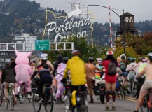 Naked bike rides have thronged the streets of Oregon’s largest city every year since 2004, often holding up traffic as the crowd cycles through with speakers playing music. Some years have drawn roughly 10,000 riders, according to Portland World Naked Bike Ride.