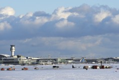 On Monday, Pearson was experiencing blowing snow and winds of 32 mph (51 kph) gusting to 40 mph (65 kph), according to the Meteorological Service of Canada. The temperature was about 16.5 degrees Fahrenheit (minus 8.6 degrees Celsius).