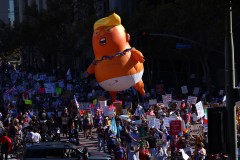 Trump's Republican Party disparaged the demonstrations as “Hate America” rallies, but in many places the events looked more like a street party. There were marching bands, huge banners with the U.S. Constitution’s “We The People” preamble that people could sign, and demonstrators wearing inflatable costumes, particularly frogs, which have emerged as a sign of resistance in Portland, Oregon.