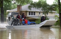 In the city of Conroe, just north of Houston, rescuers drove boats into neighborhood subdivisions to rescue people and pets from their homes, then carrying them from the boats to higher ground. In nearby Livingston, neighborhoods were flooded, with water rising to the windshields of moving vans and above the bottom of windows of some buildings.