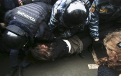 Among those detained were members of the punk band Pussy Riot who had spent nearly two years in prison as punishment for their own anti-Putin protest.