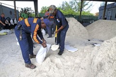 Homeowners and businesses rushed to cover their windows with plywood. Supermarkets ran out of bottled water, and long lines formed at gas stations, with fuel shortages reported in places. The governor said the Florida Highway Patrol would begin escorting fuel trucks to help them get past the lines of waiting motorists and replenish gas stations.