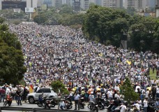 Tens of thousands of protesters made an unsuccessful attempt to march to downtown Caracas as security forces fired tear gas and rubber bullets into the crowd. Dozens even had to slide down a concrete embankment and into the Guaire River to escape the noxious fumes.