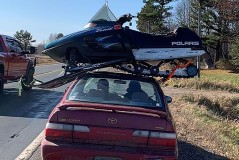 CLAYTON, Wis. (AP) — The Wisconsin State Patrol had a little advice for a guy who transported a snowmobile by strapping it to the roof of his Toyota Corolla: Bad idea.