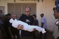 One strike on a tent in the city of Deir al-Balah killed at least six members of the same family. Two parents, their three children and the children’s aunt were killed, according to Al-Aqsa Hospital. The family was from the northern town of Beit Hanoun, and arrived in Deir al-Balah last week after fleeing a Gaza City shelter.