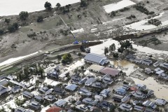 Questions have been raised about the site of the railyard, which sits in an area noted on a prefectural hazard map as a flood area. Chief Cabinet Secretary Yoshihide Suga said the operator's preparedness should be investigated later but the priority is to get the trains out of the water. Some water has been pumped out, but more than half of the railyard is still underwater.