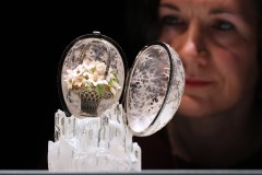 Christie’s auction house says the Winter Egg is just one of seven of the opulent ovoids remaining in private hands. It will be offered for sale at Christie’s London headquarters on Tuesday.