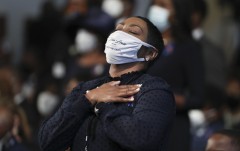Outside Ebenezer, hundreds gathered to watch the service on a large screen outside the church. Some sang the gospel song “We Shall Overcome.”
