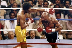 Any doubts Hagler wasn’t indeed Marvelous were erased on a spring night in 1985. He and Hearns met in one of the era’s big middleweight clashes outdoors at Caesars Palace in Las Vegas and when the opening bell rang they traded punches for three minutes in an opening round many consider the best in boxing history.