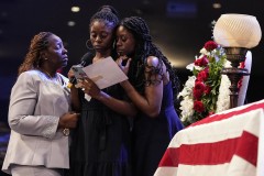 Fortson’s face and upper body were visible in his Air Force uniform, with an American flag draped over the lower half of the coffin. After viewing the body, many mourners paused to hug one another.