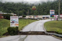 About 500 people were stranded at Crossings Mall, a mix of restaurants, stores and a hotel in Elkview, about 15 miles northeast of Charleston. Some had to sleep in their cars or at businesses overnight. Some escaped down a hillside with help from the Pinch Volunteer Fire Department. Others waited as crews scrambled to build a new gravel road to reach them.