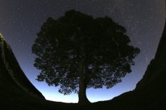 The 50-foot-tall (15-meter-long) tree planted in the 1800s stood out in a dip between two hills along the wall and became famous after it appeared in Kevin Costner’s 1991 film “Robin Hood: Prince Of Thieves.” It became a popular subject for photographers.