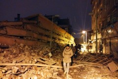 On both sides of the border, residents jolted out of sleep by the pre-dawn quake rushed outside on a cold, rainy and snowy night. Buildings were reduce to piles of pancaked floors, while major aftershocks, some nearly as strong as the first, continued.