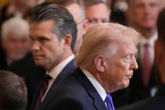 President Donald Trump walks past Defense Secretary Pete Hegseth as he exist the East Room of the White House following the Medal of Honor ceremony, Monday, March 2, 2026, in Washington. (AP Photo/Mark Schiefelbein)   (Associated Press)
