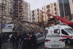 In the Turkish city of Adana, one resident said three buildings near his home collapsed. “I don’t have the strength anymore,” one survivor could be heard calling out from beneath the rubble as rescue workers tried to reach him, said the resident, journalism student Muhammet Fatih Yavus. Further east in Diyarbakir, cranes and rescue teams rushed people on stretchers out of a mountain of pancaked concrete floors that was once an apartment building.