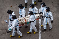 The buildings remain structurally sound, but the search has been slow, he told reporters, still wearing his white coveralls with his hard hat and respiratory mask at his side. “It is so dark inside, and because of the low light, it is very difficult to do the work, especially in places away from the windows."