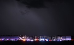 At least 100 emergency vehicles descended upon the Amazon warehouse near Edwardsville, Illinois, about 25 miles (40 kilometers) east of St. Louis, where a wall that was about the length of a football field collapsed, as did the roof above it.