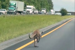 TUSKEGEE, Ala. (AP) — A runaway kangaroo named Sheila shut down a stretch of interstate in Alabama on Tuesday before state troopers and the animal’s owner wrangled the wayward marsupial.