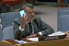 In a spontaneous exchange not often seen in the council chamber, Kyslytsya challenged his Russian counterpart to say that his country wasn't at that very moment bombing and shelling Ukraine or moving troops into it.