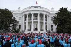 In either an act of defiance or simply tempting fate, officials organized the event just steps from the Rose Garden, where exactly two weeks ago the president held another large gathering to formally announce his nomination of Judge Amy Coney Barrett to the Supreme Court. That gathering is now being eyed as a possible COVID-19 superspreader as more than two dozen people in attendance have contracted the virus.
