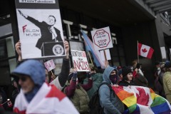 “We just want to get loud, make noise, make people aware of the problems that we’re facing,” said Cam Whitten, an American who showed up at the London protest.