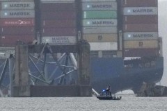 Meanwhile the U.S. Army Corps of Engineers was moving the largest crane on the Eastern Seaboard to help remove the wreckage of the bridge, Moore said, so work to clear the channel and reopen the key shipping route can begin. The machine, which can lift up to 1,000 tons, was expected to arrive Thursday evening, and U.S. Sen. Chris Van Hollen said a second crane with a 400-ton capacity could arrive Saturday.