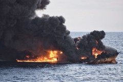 The ship was carrying natural gas condensate, which continued to burn on the ocean surface. Condensate is highly toxic but readily evaporates or burns off in a fire. If trapped underwater, however, it could seriously harm the marine environment.