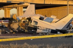 The Piper PA-31 with just the pilot aboard crashed about 3 p.m. near a highway overpass in Victoria, some 150 miles (240 kilometers) southwest of Houston, the Federal Aviation Administration said. A police video statement on Facebook said three vehicles were damaged and images showed the aircraft split at the fuselage with part of the wreckage resting atop a car.