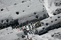 About 40 people who were stranded overnight came down on Sunday. Many were injured, and some had to be rescued by helicopters or carried down on stretchers.