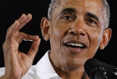 Obama spoke about the slow-moving migrant caravan from Central American bound for the United States as another example of a Republican scare tactic.