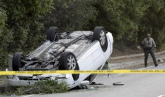 The students were struck while on a sidewalk Tuesday afternoon near Westlake High School in the city of Thousand Oaks, west of Los Angeles. The car overturned.