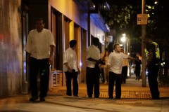 Many of the police were wearing face masks as they arrived Sunday morning to patrol the scene, where attackers using a van and knives left six people dead and more than 40 others injured. Police say officers shot dead three attackers within minutes of receiving the first call Saturday night.