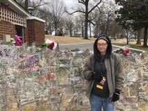 Angela Ferraro was among those on Thursday night who stopped by Graceland, where the trees in the front lawn were adorned by green and red lights. Fans took photos and left flowers at the front gate on the chilly and windy evening.