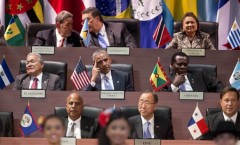 Obama arrived at the summit Saturday morning for a day of marathon meetings with leaders from across the Western Hemisphere, gathered around a massive oval table with two birds of peace in the middle. He was also to take questions from reporters before returning to Washington.