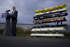 Biden used the stop at the training facility to show off his knowledge of apprentice programs and underscored the role that tradespeople play in the larger economy.