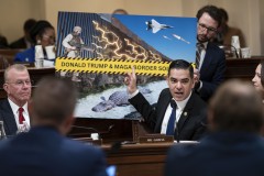 Rep. Robert Garcia, D-Calif., uses a graphic as Republicans on the House Homeland Security Committee move to impeach Secretary of Homeland Security Alejandro Mayorkas over the crisis at the U.S.-Mexico border, at the Capitol in Washington, Tuesday, Jan. 30, 2024. Democrats call the proceedings a sham...   (Associated Press)