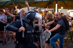 While the protests were peaceful, hours after the official Barcelona demonstration ended, there were clashes between police and several hundred people, some of whom vandalized stores and caused scenes of panic among shoppers and bystanders.