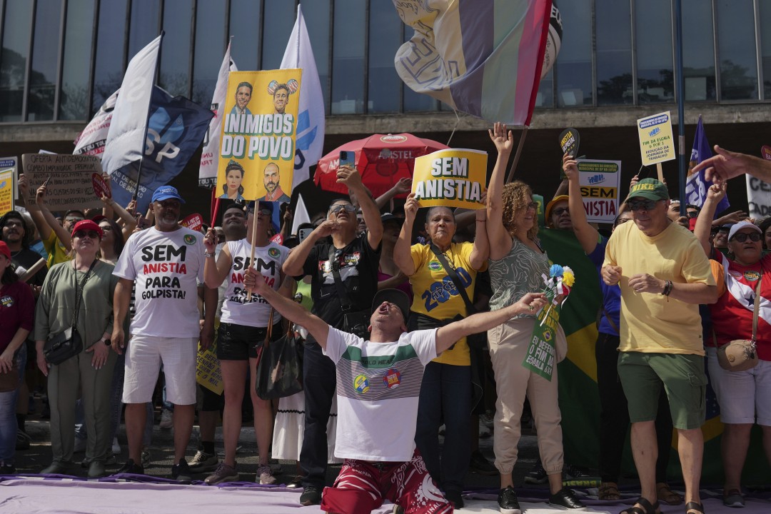 Brazilians held protests in all 26 states and the Federal District on Sunday against a possible pardon for former President Jair Bolsonaro and his allies, who were convicted of attempting a coup. Calls for demonstrations grew after the lower house on Tuesday passed a constitutional amendment that would make it harder to arrest or launch criminal proceedings against lawmakers. The measure now heads to the Senate, the AP reports. Dulce Oliveira, a 53-year-old teacher who attended the demonstration in Brasilia, said it was sending a message to lawmakers.
