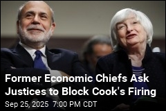 A bipartisan group of former top US economic officials has urged the Supreme Court to prevent President Trump from firing Federal Reserve Board member Lisa Cook, arguing that her sudden removal could undermine the central bank's independence and shake confidence in the economy. The coalition includes ex-Fed chairs Alan Greenspan and Ben Bernanke, as well as former Treasury secretaries from both Democratic and Republican administrations, such as Janet Yellen, Timothy Geithner, and Henry Paulson, the New York Times reports. Every living former member chair of the board signed onto the brief, per CNN.